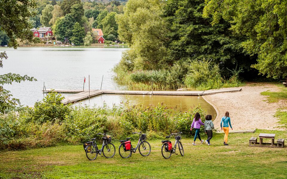 On this section you can bike through the Vattenriket biosphere area, further on old railway embankments and past places which offer wonderful swimming opportunities.