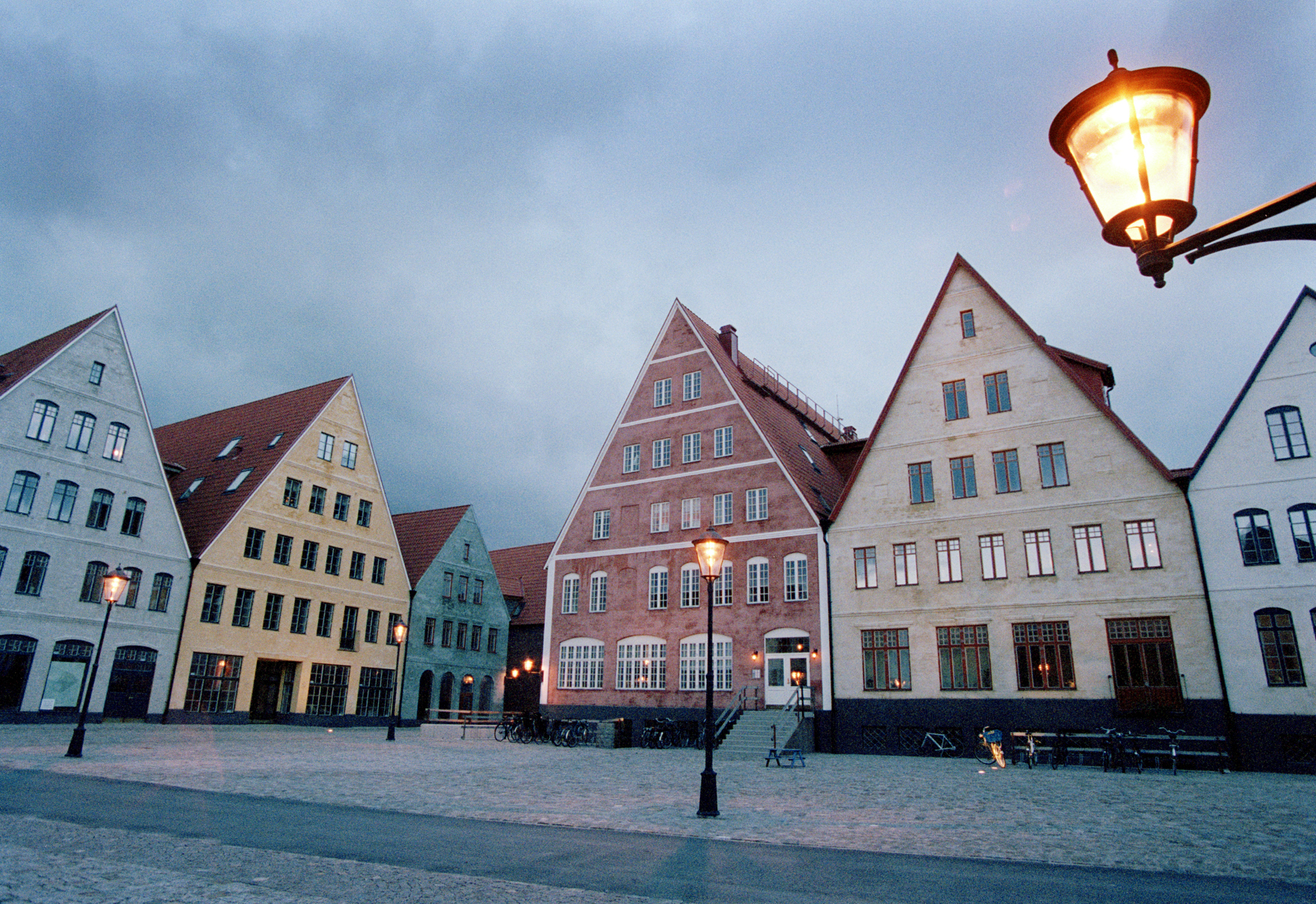 Ett bostadsområde som är byggt i medeltida stil och som för tankarna tillbaka till städer i Danmark, Tyskland och Holland.